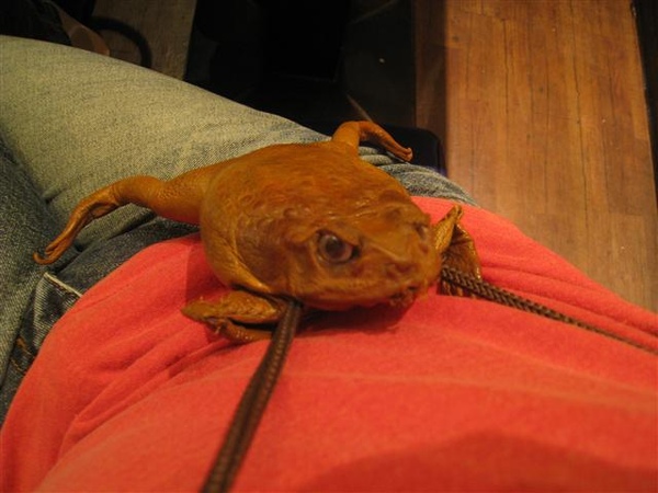 兩隻蟾蜍包一起交錯背起來,好似開心地手舞足蹈了起來!!!! (其實是手足無措!! 邊呼吼"要拍快點!!!!!!")