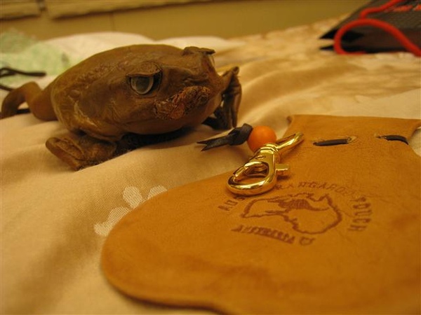 為了跟各位贖罪,今天改跟大家分享一則比較溫馨(有嗎?)的開箱文(← 第一次寫開箱文,感覺好專業!!!),這禮物要非常感謝來自澳大利亞的朋友hirohiko獨家贊助提供,雖然我以前去過澳洲,但是我頂多也只吃過袋鼠肉、抱過無尾熊而已,壓根也沒有遇到休傑克曼或是妮可基嫚,更別說是瞧過袋鼠的寶貝袋!!!!! 於是繼蟾蜍包後,這下我真的又再次大開眼界了!!!!