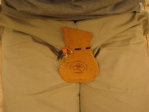大家不要覺得奇怪或殘忍,其實袋鼠在澳洲真的是太氾濫了,多到(or笨到)半夜會跳出來撞車造成人獸俱焚的下場。至於這袋鼠LP袋的來由據說是當地原住民的傳統,通常用來珍藏他們認為很寶貴的東西,當然你要放你自己的LP進去也算是適得其所啦~~ (← 前提是你要先練一下葵花寶典就是了!!) (← 等等!!! 當然前提是你要有LP啦!!!!)