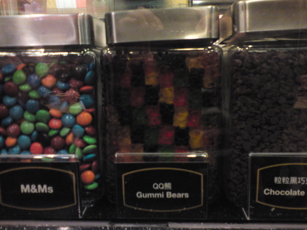 上面這張攝自ColdStone 紐約紐約店裡的甘貝熊密封罐,排得這麼假掰像是立體磁磚!!!! 這是給新進員工的第一項任務嗎??!!! 那麻煩旁邊的M&Ms也請順便排整齊一下好嗎??