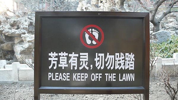 ※ 以下這三張禁止踐踏草皮的標語深得我心,有一股淡淡喜憨的瘋癲~