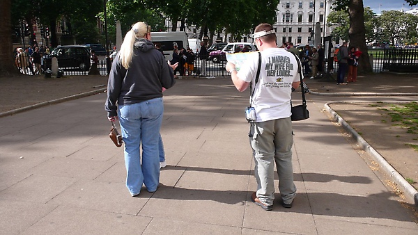 ※ 這張照片要非常用心體會,才能領誤其中的奧妙.......是的,右邊那位老公穿的T恤寫著「I married my wife for her looks」,再對照看看左邊的老婆背影....嗯....情人眼裡出西施的真諦再度感動了我心。