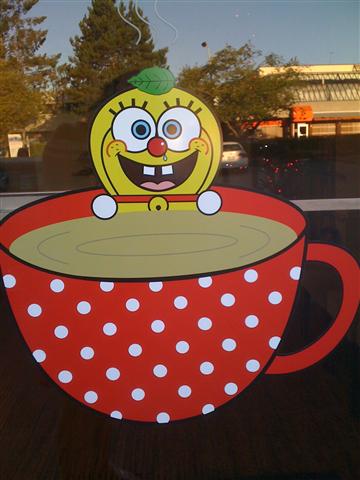 (NAJIMA提供) 來自加拿大的某家咖啡店,這店家的吉祥物應該是哆啦A夢跟海綿寶寶的私生子!!!!!! (所以是個混血兒耶~)
