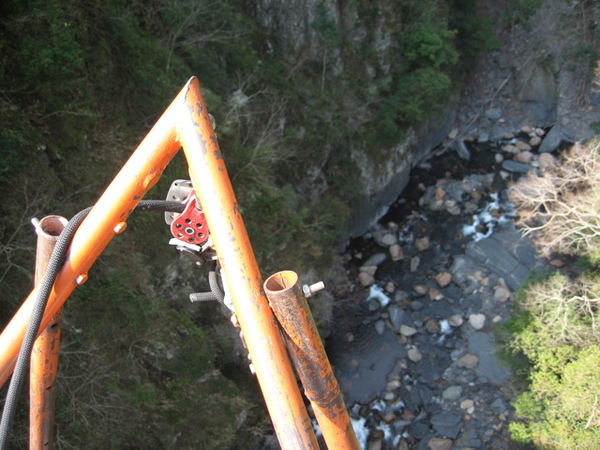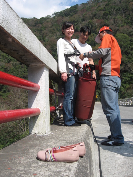 有鑒於制式的慶生活動總逃不出唱歌、吃飯等窠臼,於是我們幾個大學同學繼上回的衝浪之旅後,又於日前挑戰下一個極限運動「高空彈跳」,對!瘋了!集體去體驗生死一瞬間的瘋狂舉動,每個人還花了2000元大洋,完全是個奢侈的活動,只為了換來兩秒鐘的急速墜落快感。