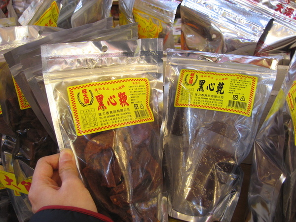 這是到了大溪豆干店後,發現它們居然有賣「黑心乾」、「黑心鞭」,相當挑釁社會邊緣的命名,差點讓我有衝動買一打回來贈送親朋好友!!!!